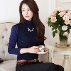 春秋新款韓國大碼通勤休閑拼色長袖雪紡襯衫5525 女式襯衣 /
