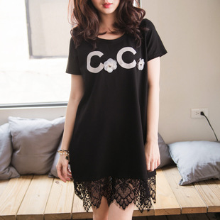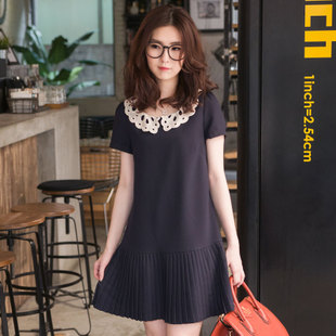 批發(fā)采購胖mm大碼女裝一件代發(fā)立體裝飾下擺蕾絲連衣裙S0491 /