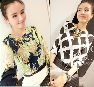 2015秋季新款韓版女裝長袖印花雪紡衫上衣批發(fā) /