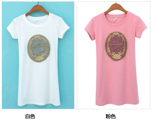 2015春裝新款歐洲站修身長(zhǎng)款短袖純棉T恤女復(fù)古金絲刺繡打底衫 /