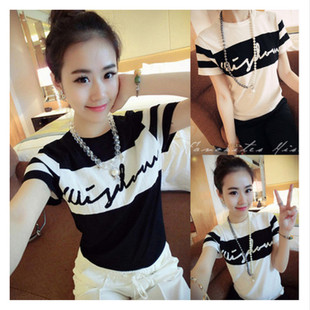 2015夏裝新款女士t恤短袖 韓版修身學(xué)生圓領(lǐng)打底女小衫女 /