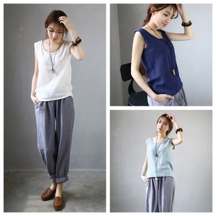 15春夏新款 棉麻背心 原創(chuàng)廠家直銷復(fù)古文藝簡(jiǎn)約竹節(jié)棉百搭背心 /