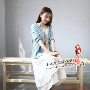 廠家直銷竹節(jié)棉麻小開(kāi)衫單排扣子文藝森女復(fù)古原創(chuàng)長(zhǎng)袖九分袖外套 /