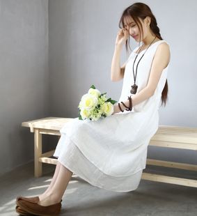 廠家直銷春夏女裝新款原創(chuàng)森女棉麻連衣裙文藝寬松大碼無(wú)袖背心裙 /