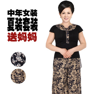 一件代發(fā)中老年女裝夏裝休閑花色套裝最大160可穿Q504029 /