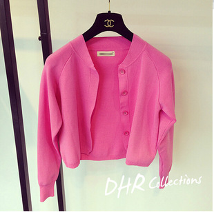 15春裝新款洋氣針織開衫 短款百搭無扣眼針織開衫女外披小外套 /