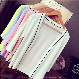 2014新款夏裝歐美氣質(zhì)針織開衫 黑邊七分袖空調(diào)衫 時尚韓版防曬衫 /