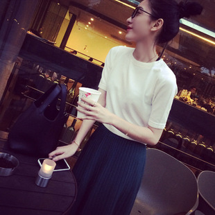 2015春夏新韓國代購韓版原單百搭修身圓領(lǐng)套頭短袖針織衫 女裝T恤 /