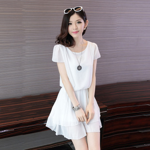 實(shí)拍新款連衣裙韓版大碼女裝修身形顯瘦雪紡裙短袖打底裙夏 /