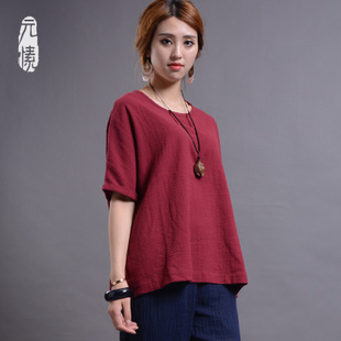 元愫2015夏款 原創(chuàng)文藝棉麻襯衫 亞麻短袖女裝寬松上衣 廠家直銷 /