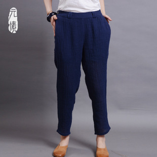 元愫 2015夏季新款原創(chuàng)亞麻女裝 肌理亞麻休閑褲九分褲 百搭女褲 /