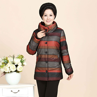 新款冬裝中老年休閑棉衣媽媽裝保暖外套時(shí)尚立領(lǐng)橫條紋大碼大版型 /