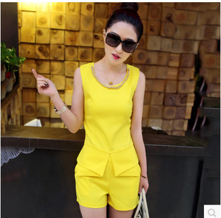 簡介: 產(chǎn)地 廣州 主圖來源 其他來源 貨源類別 現(xiàn)貨 是否庫存 是 庫存類型 整單 風格 復(fù)古 圖案 純色 面料 滌綸 款式 褲套裝 上衣款式 背心 上衣袖長 無袖 褲款式 直筒褲 褲長 短褲 流行元素 不規(guī)則,立體裝飾,鑲鉆 工藝 高溫定型 上市年份/季節(jié) 2015夏季 顏色 白色,黃色,黑色,淺藍色,粉紅色,淺綠色 尺碼 S,M,L,XL