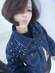 奢華釘珠鑲鉆2015秋季繆家大牌高端尖貨手工 現(xiàn)貨牛仔短款外套女 /