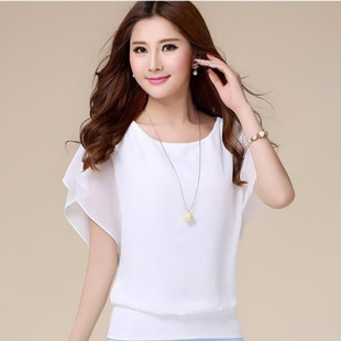 2015夏季新款時尚女短袖T恤大碼女裝顯瘦蝙蝠袖雪紡衫寬松上衣 /