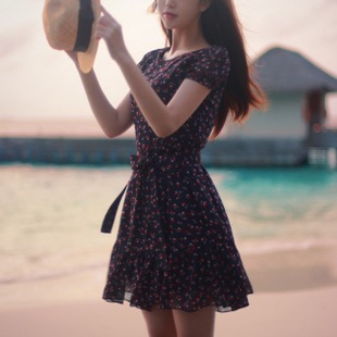 2015韓國milkcocoa新款小櫻桃印花甜美田園小清新雪紡連衣裙 /
