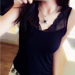大碼女裝早秋新款蕾絲邊百搭打底背心200斤胖mmV領(lǐng)鏤空小吊帶女 /