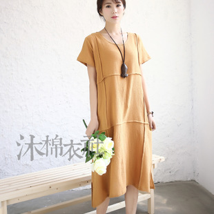 2015夏季新款棉麻女裝拼接亞麻連衣裙沙灘裙批發(fā)一件代發(fā)加肥加大 /