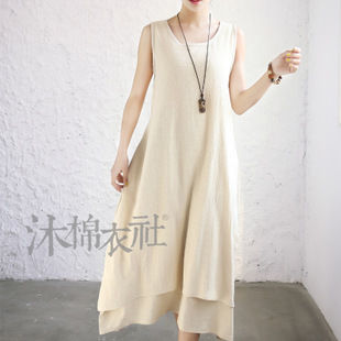 廠家直銷 2015森女夏季中長款連衣裙沙灘裙棉麻大碼連衣裙長裙 /