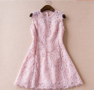 2015夏季歐美蝴蝶結顯瘦圓領睫毛蕾絲連衣裙女 1685 /