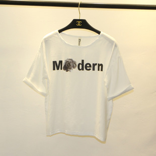 韓版女裝寬松短袖上衣潮字母花朵印花蝙蝠袖T恤女夏Y8032 /