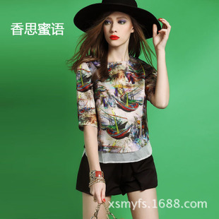 簡介: 建議零售價 ¥155.00 貨號 YGLJR886 產(chǎn)地 深圳 品牌 香思蜜語 主圖來源 實拍有模特 貨源類別 現(xiàn)貨 風(fēng)格 歐美 圖案 印花 面料 化纖 款式 褲套裝 上衣款式 T恤 上衣袖長 七分 褲款式 鉛筆褲 褲長 短褲 工藝 印花/印染 上市年份/季節(jié) 2015夏季 顏色 雪紡版 尺碼 L,M,XL