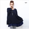 2014新款歐美大碼女裝雪紡拼接莫代爾棉十字架假兩件長(zhǎng)袖T恤批發(fā) /