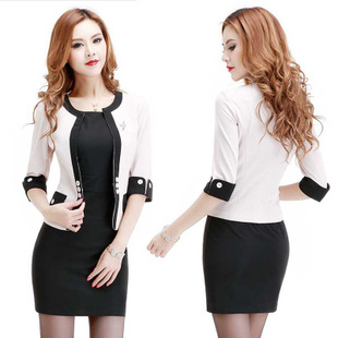 一件代發(fā)2014秋冬新款氣質(zhì)假兩件修身通勤OL職業(yè)裝連衣裙女套裝 /