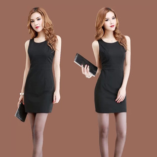 一件代發(fā)2014新款職業(yè)連衣裙夏修身氣質(zhì)包臀OL黑色無袖背心裙夏 /