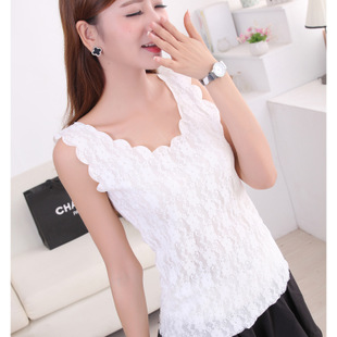 2015春夏裝新款白色修身鏤空蕾絲背心上衣小吊帶衫女士蕾絲打底衫 /