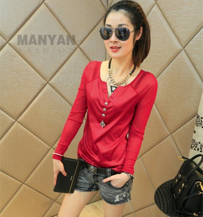 2015新款韓版女式上衣雪紡衫長袖蕾絲打底衫修身網(wǎng)紗小衫T恤 /