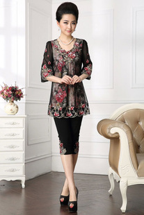 大碼媽媽裝2015中老年新款燙鉆釘珠刺繡連衣裙兩件套套裝 /