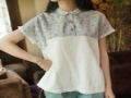 2015 夏款 日系森女休閑寬松大碼全棉拼接藍格子綠短袖T恤女 /