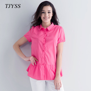 天嬌一生水2015新款夏裝胖mm時尚大碼襯衫女寬松OL風純色短袖襯衣 /