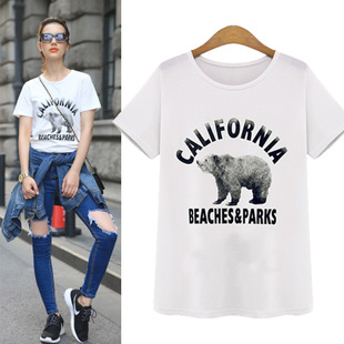 2015032#大碼小熊圖案字母印花短袖T恤女2015夏季圓領(lǐng)寬松打底衫 /