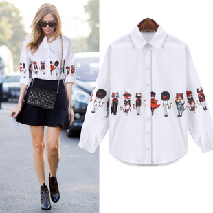 2015033大碼卡通印花襯衫 女長袖白襯衣 大碼打底衫 女新款 /