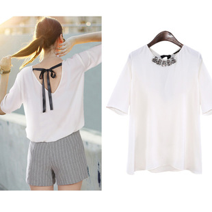 2015031大碼女裝蝴蝶結(jié)個(gè)性T恤夏裝雪紡短袖打底衫2015夏裝新款 /