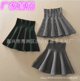 秋冬 半身裙 羊毛韓版千鳥格高腰百褶格子包臀毛線 短裙批發(fā) /
