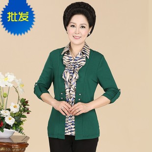 一件代發(fā) 中老年女裝春裝假兩件中年媽媽裝針織外套A0001 /