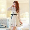 2013秋冬新款女裝 代理批發(fā) 韓版長袖蝴蝶結(jié)蕾絲連衣裙配腰帶7523 /