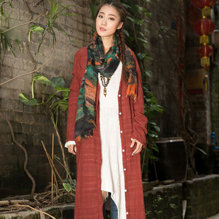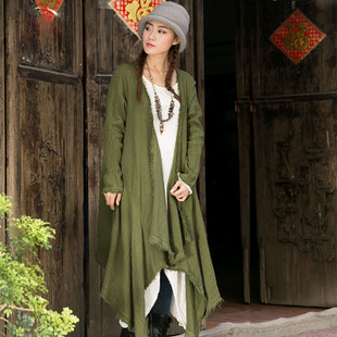 2015春款原創(chuàng)復(fù)古文藝棉麻長袖蝙蝠袖寬松中長款大碼開衫640466 /