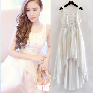 2015夏新款釘珠不規(guī)則連衣裙仙女飄逸長裙吊帶裙 /