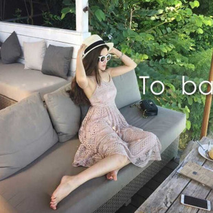 2015夏新款性感露背吊帶鏤空蕾絲中長款連衣裙一件代發(fā) /