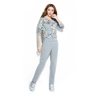 女裝一件代發(fā)2015春款新品韓版純棉印花運(yùn)動(dòng)休閑修身套裝女 /