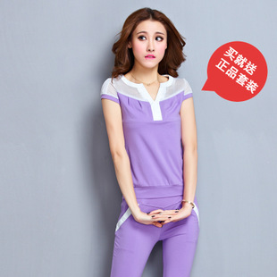 休閑套裝女夏裝潮2015夏季新款時(shí)尚雪紡短袖七分褲大碼女裝運(yùn)動(dòng)服 /