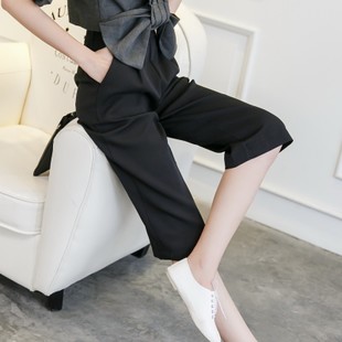 2015新款 韓國(guó)高腰顯瘦闊腿褲 七分休閑百搭西裝褲女 /
