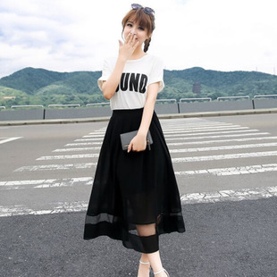 2015春夏裝透視網(wǎng)紗拼接雪紡半身裙韓版修身顯瘦高腰裙 /