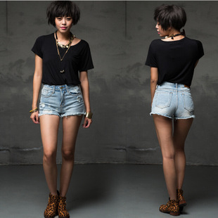寬松胖mm大碼牛仔短褲女顯瘦磨破洞韓國(guó)牛仔打底短褲 廠價(jià)直銷 /