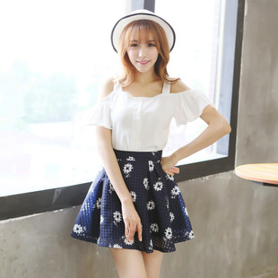 【爆款】新款2015春夏女裝~韓版吊帶露肩荷葉上裝+短裙套裝A81259 /