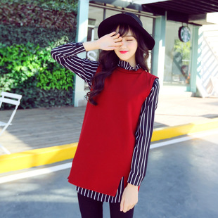 【爆款促銷中】2015 東大門品質(zhì)~假兩件條紋拼接毛呢連衣裙F81326 /